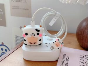 Printme™ Cute Funny Protective Case for Apple 20W/18W USB-C, USB-A Power Adapter Chargers and Lightning Cable (4 in 1) (Dino)