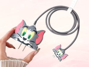 Prolet Cartoon Silicone Charger Case for iPhone Adapter Compatible with 18W and 20W Charger Only 360° Full Protection Silicone Case Cover 4 in 1(Tom) Grey