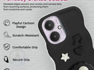 AESTMO Back Case Cover for Redmi 13C 5G / Poco M6 5G | 3D Cute Fun Cartoon Characters | Anti Slip Grip Cute Wave Curly Frame Shape | Back Cover for Redmi 13C 5G / Poco M6 5G | (Black)