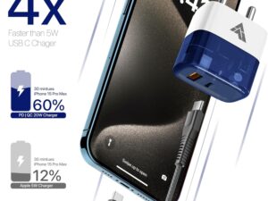 DR VAKU 20W Fast Charger Adapter Compatible With iPhone 14/14 Plus/14 Pro/14 Pro Max,13/12/11 Series,iPad With 1 Meter Type C To Lightning Data Cable Pd 2.0 (1 Adapter + 2 Cable),White