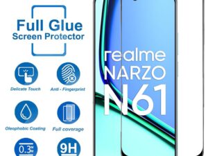 FabeKee Tempered Glass Screen Protector Compatible For Realme Narzo N61 Smartphone Black With Edge-To-Edge Protector Coverage And Easy Installation Kit (Realme Narzo N61)
