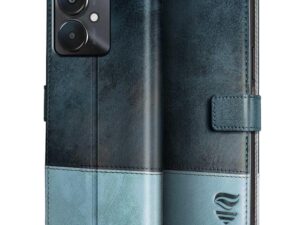 FLIPPED Vegan Leather Flip Case Back Cover for Samsung Galaxy S24 FE 5G (Flexible, Shock Proof | Hand Stitched Leather Finish | Card Pockets Wallet & Stand | Blue with Aquamarine)