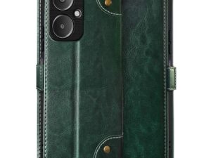FLIPPED Vegan Leather Flip Case Back Cover for Samsung Galaxy S24 5G (Flexible, Shock Proof | Hand Stitched Leather Finish | Card Pockets Wallet & Stand | Irish Blue with Tanned Oak)