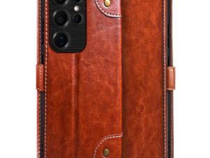 FLIPPED Vegan Leather Flip Case Back Cover for Samsung Galaxy S24 5G (Flexible, Shock Proof | Hand Stitched Leather Finish | Card Pockets Wallet & Stand | Coffee with Brown)