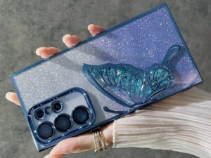 for Samsung Galaxy S24 Ultra 5G | Case with Luxury Glitter Cute Butterfly Plating Design Aesthetic Women Teen Girls Phone Cases Camera Protection for Samsung Galaxy S24 Ultra 5G (Blue)