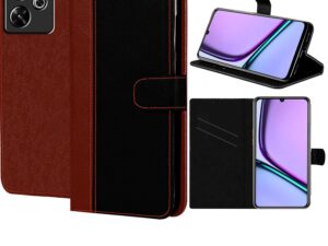 Hupshy Faux Leather Flip Case Back Cover for realme NARZO N61 Foldable Stand and Inside Card Pocket|Shockproof with 360 Degree |Magnetic Clutch Folie (Black and Brown)