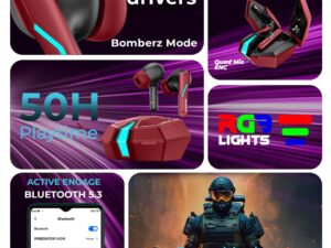 HOPPUP Xo6 Gaming Earbuds with 35MS Low Latency, RGB LED, 13MM Drivers & 50H Playtime Bluetooth (Red, True Wireless)