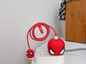 KHR 3D Cartoon Design Protective Case Compatible with Apple 18-20W USB-C Power Adapter, Type-C & Lightning Cable Case for iPhone Charger Protection Cover (Spiderman)