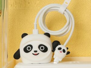 KHR 3D Cartoon Design Protective Case Compatible with Apple 18-20W USB-C Power Adapter, Type-C & Lightning Cable Case for iPhone Charger Protection Cover (White Panda)