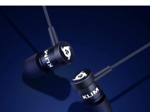 KLIM Fusion Earphones with Microphone – More Than 700 000 Units Sold – New – Long-Lasting Wired Headphones – in-Ear with Memory Foam – Earphones with Mic – 3.5mm Jack – Black – USB-C