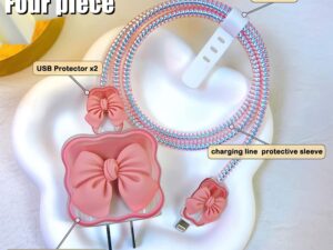 MAGICHUB Silicone Charger Case Cover with 360-degree Full Protection Bow Design Suitable for iPhone for 18-20W USB-C Power Adapter Charger Cover (Pink)