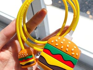 Meyaar Silicone Protective Case for Apple 20W & 18W iPhone USB-C Power Adapter Charger and for USB Lightning Cable, 3D Cartoon Case for iPhone Charger 18W/20W Only (Burger)