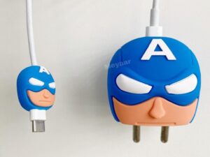Meyaar Silicone Protective Case for Apple 20W & 18W iPhone USB-C Power Adapter Charger and for USB Lightning Cable, 3D Cartoon Case for iPhone Charger 18W/20W Only (Cap-America (Blue))