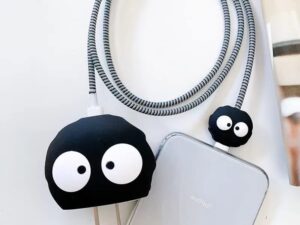 Meyaar Silicone Protective Case for Apple 20W & 18W iPhone USB-C Power Adapter Charger and for USB Lightning Cable, 3D Cartoon Case for iPhone Charger 18W/20W Only (Funny Bhoot (Black))