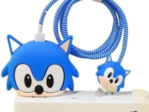 Meyaar Silicone Protective Case for Apple 20W & 18W iPhone USB-C Power Adapter Charger and for USB Lightning Cable, 3D Cartoon Case for iPhone Charger 18W/20W Only (Son.ic (Blue))