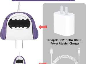 Meyaar Silicone Protective Case for Apple 20W & 18W iPhone USB-C Power Adapter Charger and for USB Lightning Cable, 3D Cartoon Case for iPhone Charger 18W/20W Only (shark (Grey))