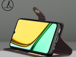 Outlouders Genuine Leather Finish Flip Back Cover Case | Inbuilt Pockets & Stand | Wallet Style | Designer Button Magnet Flip Back Cover Case for Realme C61 / Realme Narzo N61 (Coffee)