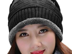 ADBUCKS Snow Proof Inside Fur Unisex Wool Beanie Cap Warm Knit Hat Thick Fleece Lined Winter Hat for Men & Women