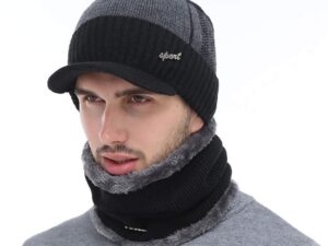 Alexvyan 1 Set Hat Style Soft Casual Style Cap and Scarf Imported Warm Snow and Air Proof Fleece Knitted Cap (Inside Fur) Woolen Beanie Winter Cap with Scarf for Men Boy Male, Free Size, Black,Grey