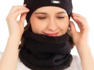 HIVER Winter Beanie Cap Scarf Set | Warm Knit Cap | Thick Fleece Lined Winter Hat & Scarf for Men Women| Soft & Comfortable |