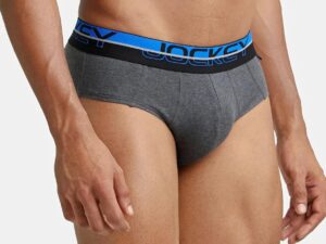 Jockey Men’s Cotton Square Cut Brief (Pack of 1) (FP01_Charcoal Melange_X-Large_Charcoal Melange & Rich Royal Blue_XL)