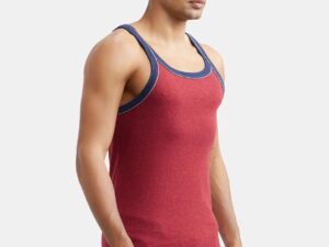 Jockey US54 Men’s Super Combed Cotton Rib Square Neckline Slim Fit Gym Vest with Back Panel Graphic Print (Shoulder Starp Color May Vary)