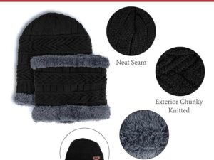 KIDBIRD Beanie Woolen Cap Hat and Neck Warmer Scarf Set for Men & Women (2 Piece) (Black)