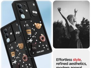 Outlouders Back Cover for Vivo T4x 5G / iQoo Z10x 5G | 3D Cartoon Bear Cute Fun Silicone Full Body Protection Bumper Case (Black)
