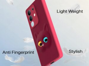 Outlouders Back Cover for Vivo T4x 5G/ iQoo Z10x 5G | Soft TPU | Cute Cat | Leather Finish | Bumper Case for Girls (Pink)