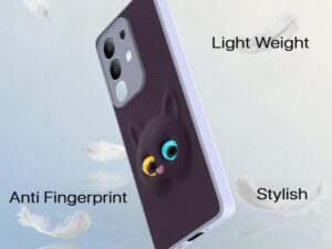 Outlouders Back Cover for Vivo T4x 5G/ iQoo Z10x 5G | Soft TPU | Cute Cat | Leather Finish | Bumper Case for Girls (Purple)