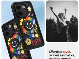 Outlouders Back Cover for Vivo T3 Pro 5G / iQOO Z9s Pro 5G | Cute Rainbow Smile 3D Cartoon Flower | Soft Silicone Raised Camera Protection Bumper Case (Black)