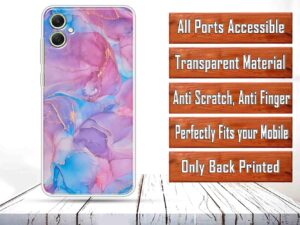 Printed Designer Back Cover for Samsung Galaxy A05 / F05 / M05 Back Cover Case – Pink and Blue Golden Wavy Marble D16289_66874