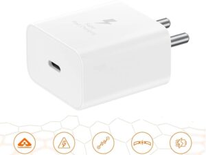 Prifakt 25W C-Type Super Fast Adapter Compatible with Samsung Galaxy M05 Super Fast Charger Adapter for S24/S23/S23 fe/S22/S21/21 fe/S20/M14/M33/M13/M35/M05/A14, A15/S24 fe/A16 5g, White