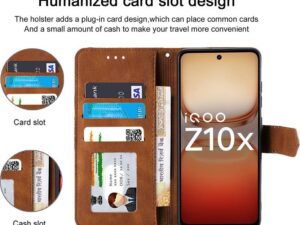 RAHISHI Flip Cover Compatible for iQOO Z10X 5G/Vivo T4X 5G Flip & Full Cover Attractiv Brown