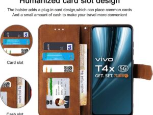 RAHISHI Flip Cover Compatible for Vivo T4x 5G/iQOO Z10x 5G Flip & Full Cover Attractiv Brown