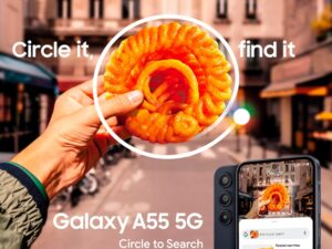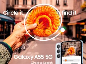 Samsung Galaxy A55 5G (Awesome Iceblue, 8GB RAM, 256GB Storage) | AI | Metal Frame | 50 MP Main Camera (OIS) | Super HDR Video| Nightography | IP67 | Corning Gorilla Glass Victus+ | sAMOLED Display