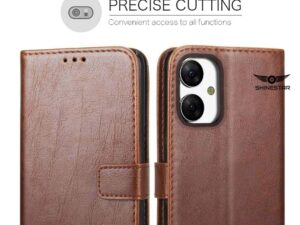 SHINESTAR iQOO Z10 Lite 5G / Vivo T4 Lite 5G Flip Back Cover | PU Leather Flip Cover Wallet Case with TPU Silicone Case Back Cover for iQOO Z10 Lite 5G / Vivo T4 Lite 5G – Classic Brown