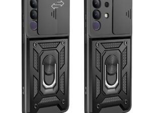 SESS XUSIVE PC,TPU Tough Armor Bumper Back Cover Case For iQOO Z10 Lite 5G/Vivo T4 Lite 5G|Sliding Camera Cover,Kickstand & Ring Holder|360 Degree Protection Back Cover Case-Black