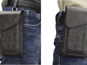 SkyTree Genuine Leather Double Mobile Pouch Belt Clip Cases Bag Pack for Samsung Galaxy M05 – Black (2 Pocket for 6.5 inch and 5.5 inch)