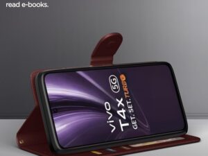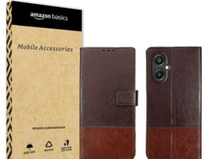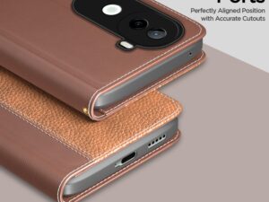 Amazon basics Flip Cover for iQoo Z9s 5G / Vivo V40e 5G | Leather Finish | Wallet Stand and Shock Proof | Complete Protection Flip Case (Tan)