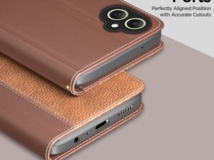 Amazon basics Flip Cover for Samsung Galaxy A05 / M05 / F05 | Leather Finish | Wallet Stand and Shock Proof | Complete Protection Flip Case (Tan)