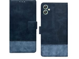 amazon basics Flip Back Cover Case for Samsung Galaxy M05 / A05 / F05 | Dual-Color Leather Finish | Inbuilt Stand & Pockets | Flip Back Cover for Samsung M05 / A05 / F05 (Blue with Sky)