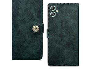 amazon basics Flip Cover for Samsung Galaxy M05 / A05 / F05 | Leather Finish | Designer Button | Inbuilt Pockets & Stand | Flip Cover for Samsung M05 / A05 / F05 (Faux Leather, Green)