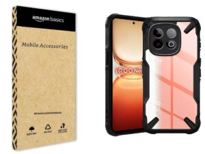 amazon basics Iqoo Neo 10 5G Back Cover | Crystal Clear Transparent Back | Ultra Hybrid | Full Camera Protection | Raised Edge | Bumper Back Case (Black)