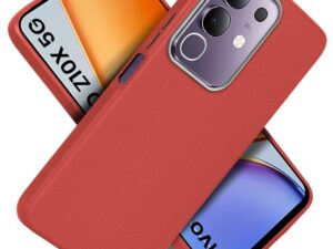 WOW IMAGINE Leather Fabric Soft TPU Back Cover for Vivo T4X 5G | iQOO Z10X 5G (Crimson Red)