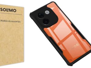 Amazon Brand – Solimo Clear Back Cover Case for iQOO Z9s Pro 5G / Vivo T3 Pro 5G | 360 Degree Protection | Transparent Back Case for iQOO Z9s Pro (PC & TPU, Black Bumper)