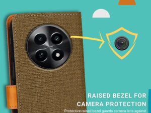 Denim & Leather Flip Cover for Realme Narzo N65 5G | Inbuilt Stand & Pockets | Premium Leather Mobile Phone Case Realme Narzo N65 5G (Dark Brown)
