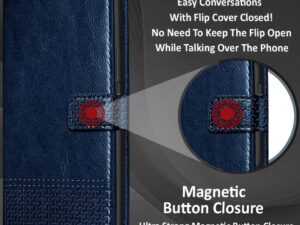 Fashionury Flip Back Cover for Samsung Galaxy M35 5G | Designer Button | Genuine Leather | Inbuilt Pockets & Stand | Flip Cover (Steel Blue)