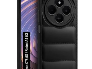 Fashionury Redmi A4 5G / Poco C75 5G / Redmi 14C 5G / Poco M7 5G Back Case | Shockproof Armor Bumper | Liquid Silicon Puff Case | Ultimate Drop Protection | Soft TPU Case Cover (Black)