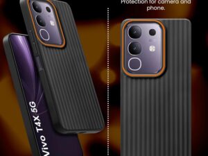 FIRST MART IQOO Z10x 5G / Vivo T4x 5G (6.72 Inches) Back Cover | Vertical Beam Bump Protection | Ring Line Camera Protection |Soft Rubberised Ring Line Beam Back Case (Black)